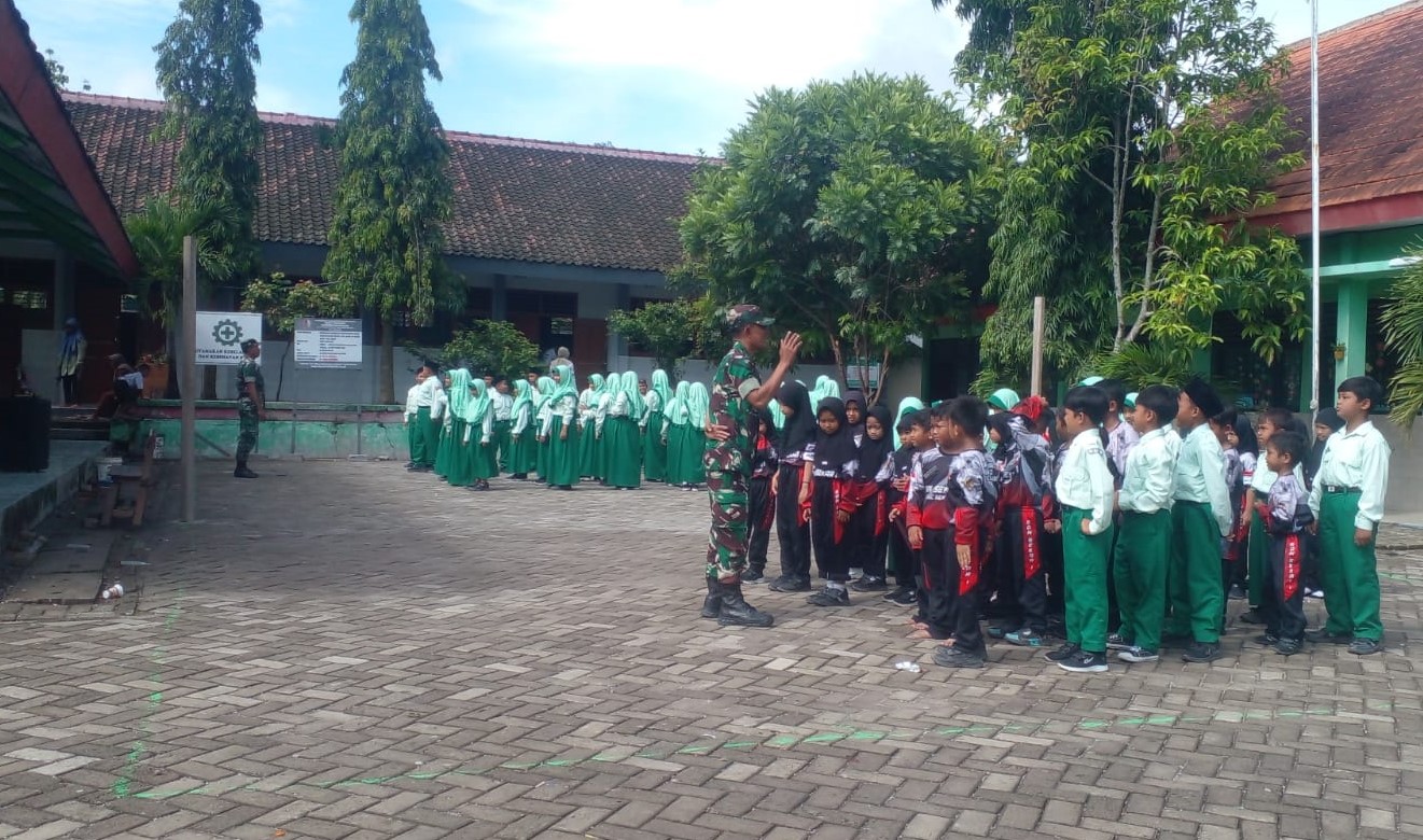 BOJONEGORO,Jawakini.com – Upaya pembinaan karakter dan penanaman rasa cinta tanah air kepada generasi muda terus digencarkan oleh jajaran TNI. Sebanyak 70 siswa dan siswi Sekolah Dasar Negeri (SDN) Sekar I, Kecamatan Sekar, Kabupaten Bojonegoro, mendapatkan pembekalan intensif mengenai Wawasan Kebangsaan (Wasbang) dan Bela Negara dari Babinsa Posramil 16/Sekar.