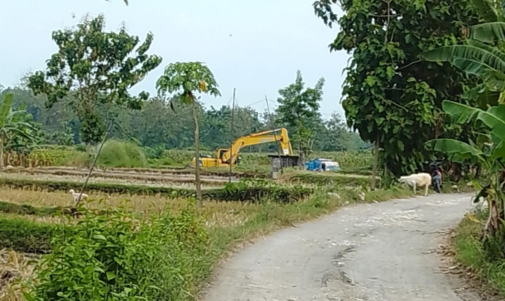 Menurut SU, salah satu warga setempat, aktivitas tambang mulai terlihat sejak awal pekan ini. Sebuah Excavator tampak sibuk memuat tanah ke puluhan dump truk yang mengantre di lokasi tambang. Ia menduga, pengelola tambang belum mengantongi izin resmi, termasuk dari pemerintah desa.