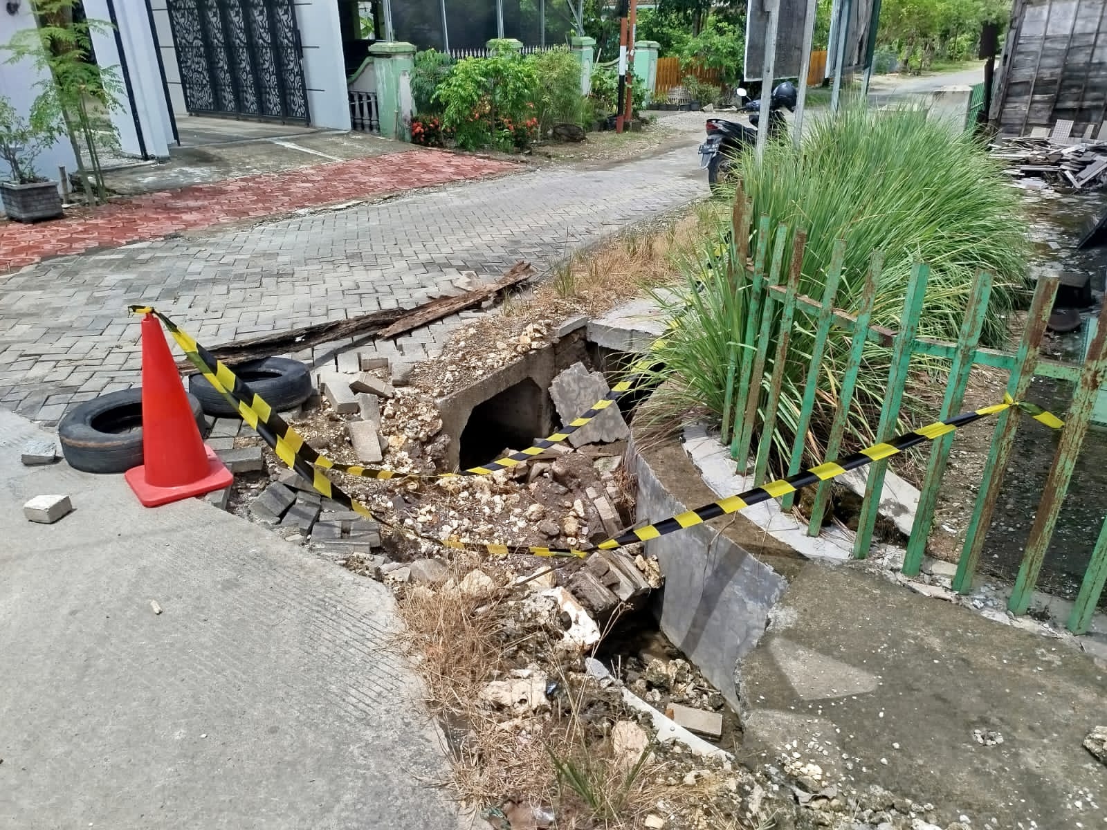 Kerusakan terlihat jelas pada badan jalan, termasuk ambruknya beberapa bagian gorong-gorong dan pengerasan jalan yang pecah. Kondisi ini dikhawatirkan warga dapat menghambat akses dan membahayakan pengguna jalan, mengingat ini adalah jalan poros desa yang sangat vital.