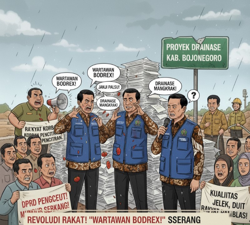 BOJONEGORO,Jawakini.com – Jika Komisi D DPRD Bojonegoro adalah jurnalis, mereka mungkin akan dijuluki “Wartawan Bodrex” – cepat muncul saat ada berita panas, ngomong lantang seolah paling peduli, tapi hasil liputannya nol besar dan hanya meninggalkan janji kosong. Sidak proyek drainase puluhan miliar rupiah yang seharusnya menjadi momen krusial pengawasan, kini telah berubah menjadi drama murahan yang mempertontonkan kemunafikan dan kemandulan legislatif di mata rakyat Bojonegoro.