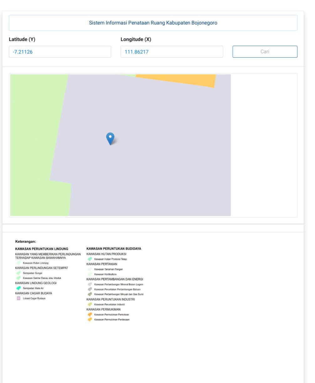 Penelusuran koordinat -7.211258,111.862175 di Google Maps menunjukkan keberadaan bangunan atas nama PT. ALAM Kop. KAREB. Ketidaksesuaian ini semakin benderang saat menelusuri laman resmi SIPETARUNG Bojonegoro. Secara digital, koordinat lokasi tersebut masih terkunci sebagai kawasan tanaman pangan. Perbedaan mencolok antara fisik bangunan di lapangan dengan data di sistem pemerintah ini mencerminkan adanya gap transparansi yang lebar.