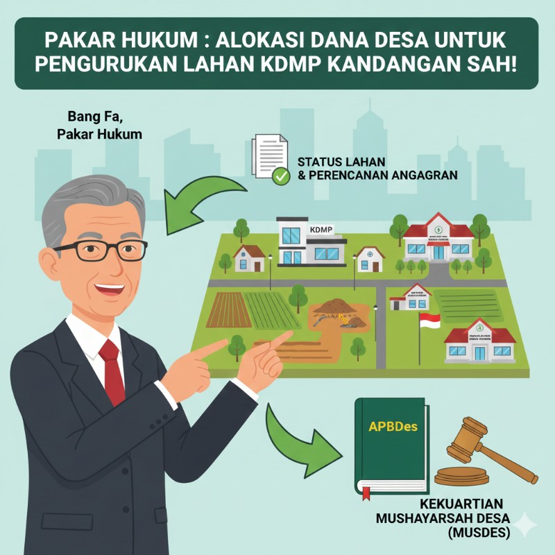Menurut Bang Fa, poin krusial pertama adalah status lahan yang digunakan. “Selama tanah yang dipakai untuk KDMP adalah tanah desa, itu tidak masalah. Kedua, kegiatannya harus masuk dalam perencanaan, baik di APBDes induk maupun perubahan,” ujarnya saat dikonfirmasi media, Senin (29/12/2025).