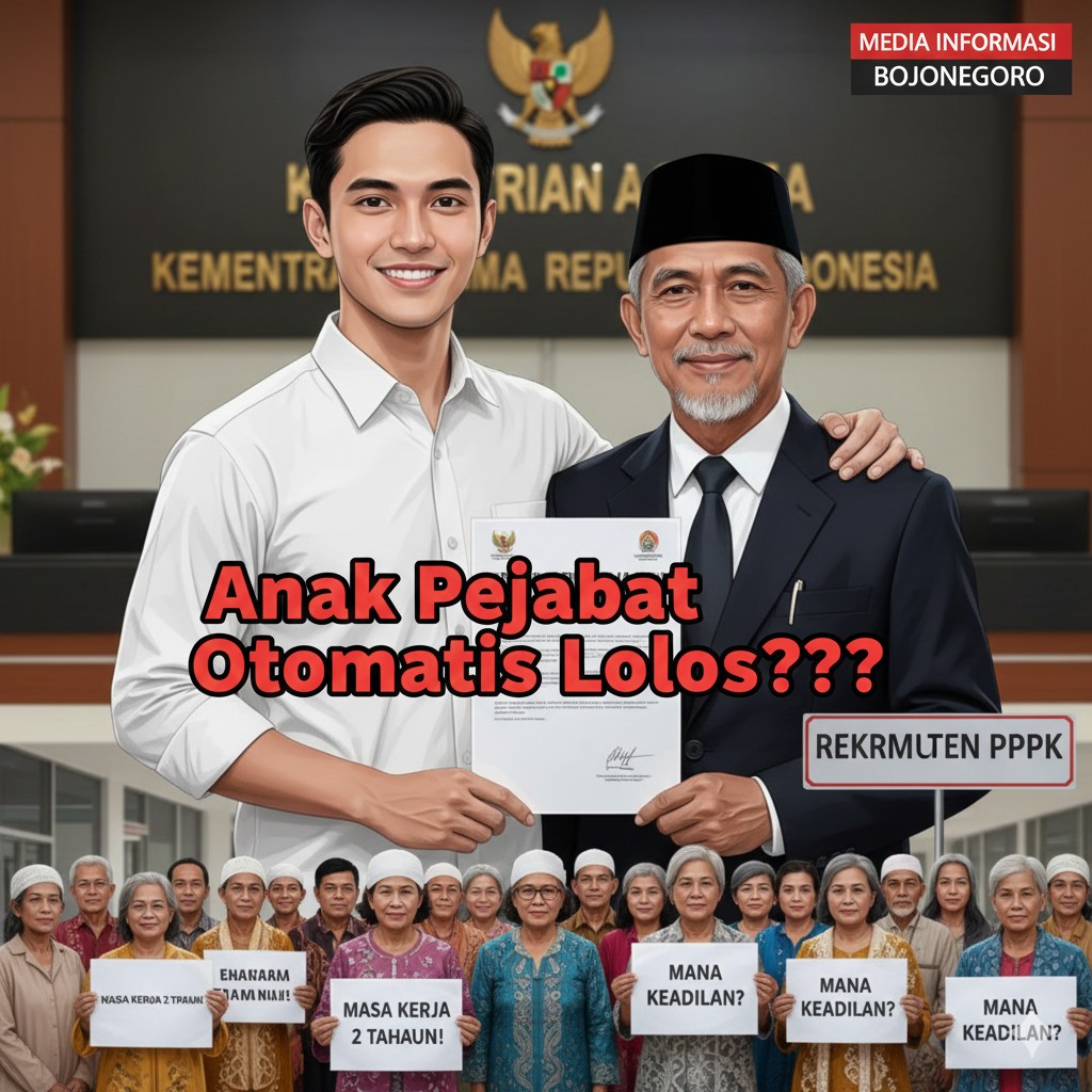 BOJONEGORO,Jawakini.com – Transparansi rekrutmen Pegawai Pemerintah dengan Perjanjian Kerja (PPPK) di lingkungan Kantor Kementerian Agama (Kemenag) Kabupaten Bojonegoro kini tengah berada di bawah sorotan tajam publik. Sebuah dugaan ketidakpatuhan terhadap prosedur administrasi mencuat, menyeret nama salah satu peserta seleksi yang memiliki kedekatan keluarga dengan pejabat internal.