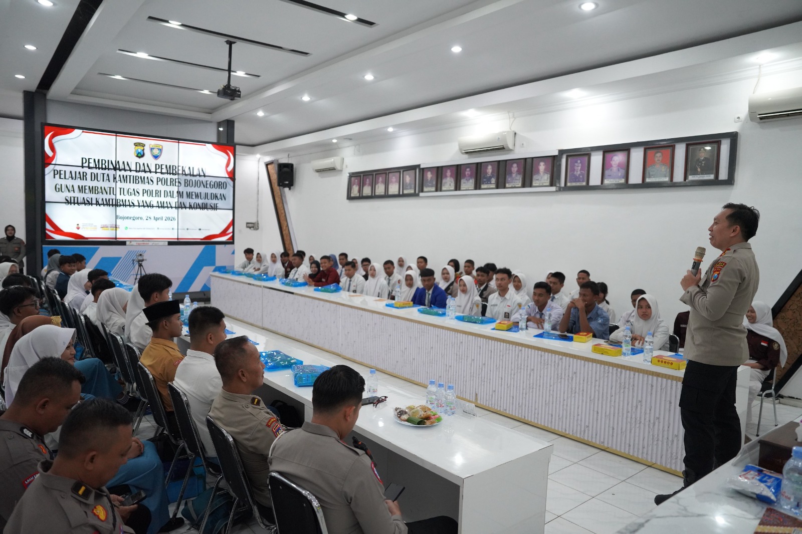 Bojonegoro,Jawakini.com – Polres Bojonegoro menggelar program Pembekalan Pelajar Duta Kamtibmas (PDK) Tahun 2026 sebagai upaya menjaga keamanan dan ketertiban masyarakat (Harkamtibmas). Kegiatan tersebut berlangsung di Gedung AP I Rawi Mapolres Bojonegoro, Selasa (28/4/2026), dengan melibatkan 70 pelajar dari berbagai sekolah tingkat SMA, SMK, dan MA se-Kabupaten Bojonegoro.