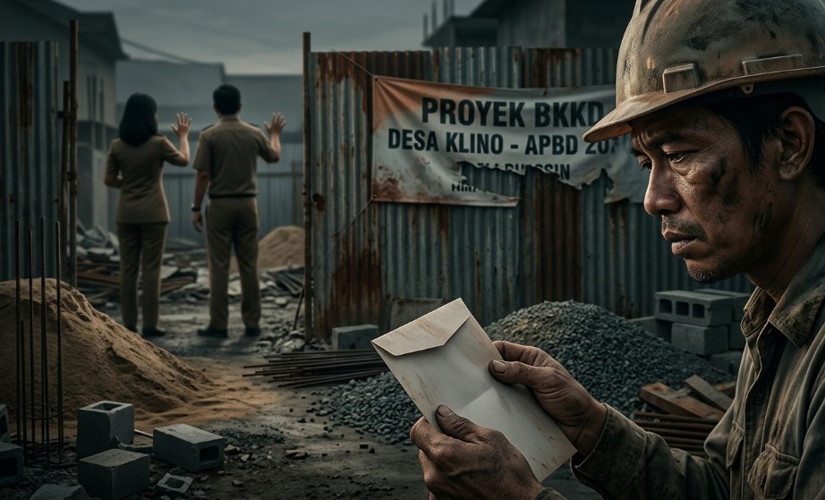 BOJONEGORO,Jawakini.com – Ambisi Pemerintah Desa Klino dalam menuntaskan proyek Bantuan Keuangan Khusus Desa (BKKD) kini terganjal persoalan pelik. Bukan sekadar progres fisik yang merayap di angka 45 persen, proyek ini mulai memercikkan aroma tak sedap terkait transparansi manajemen tenaga kerja dan pemenuhan hak upah pekerja.
