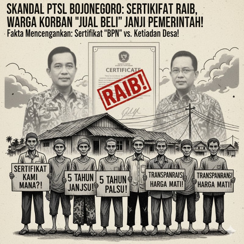 Program PTSL, yang seharusnya menjadi solusi percepatan legalisasi aset nasional, kini diwarnai noda hitam di Bojonegoro. Kasus Sambongrejo ini harus menjadi sorotan serius Aparat Penegak Hukum.