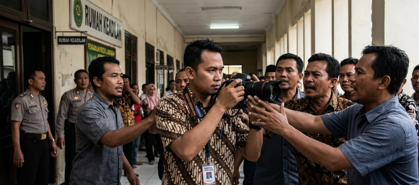 Edi Santoso, jurnalis dari Berita Keadilan, menjadi sasaran konfrontasi saat menjalankan tugas profesinya. Niatnya sederhana namun sakral dalam demokrasi: merekam fakta dan mendokumentasikan wajah terdakwa sebagai bentuk transparansi bagi masyarakat. Namun, keterbukaan itu nampaknya menjadi ancaman bagi pihak tertentu.